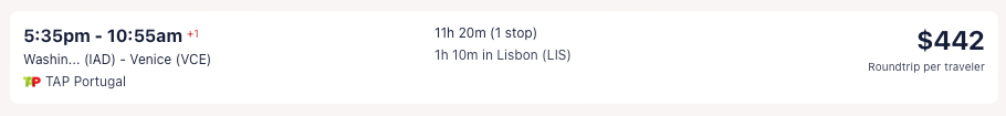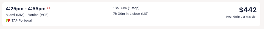 Amazing deal: Miami, Chicago, Newark, Washington DC, Boston, San Francisco to Venice, Italy from $442 round-trip.