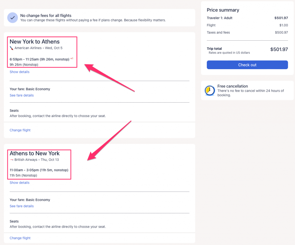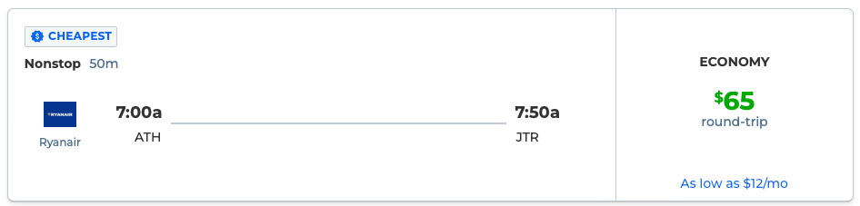 AA nonstop flight to Athens, Greece from NYC for $502 R/T or 2in1 with Santorini for $65 extra