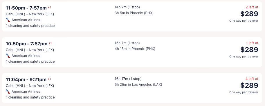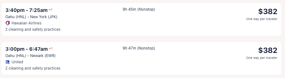 6. from Honolulu, Hawaii to New York/Newark on Nov 4