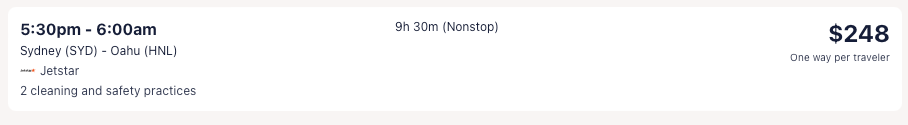 5. from Sydney, Australia to Honolulu, Hawaii on Oct 29