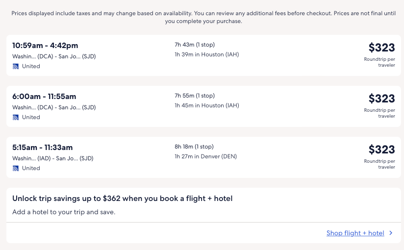 Amazing deal: New York, Houston, Dallas, Los Angeles, San Francisco (nonstop); Philadelphia, Miami, Austin, Washington DC to Los Cabos, Mexico from $259 round-trip.