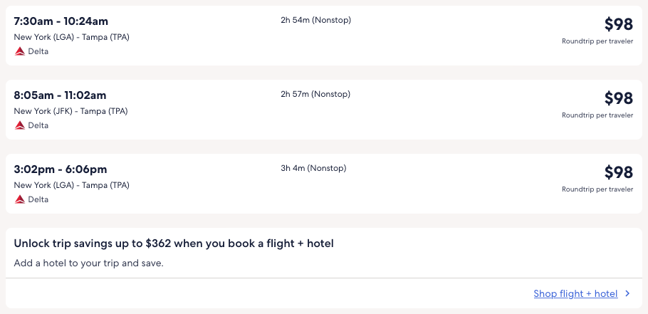 Amazing deal: New York to Florida: Miami, West Palm Beach, Fort Myers, Tampa from $98 round-trip.