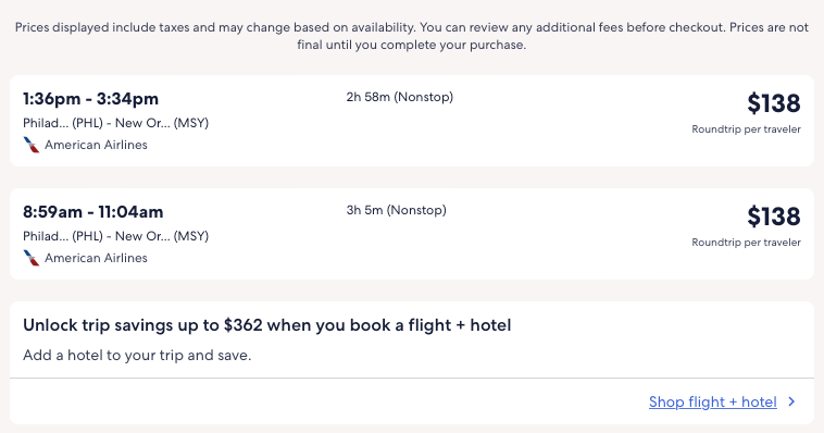 Amazing deal: Philadelphia to New Orleans from $138 round-trip.