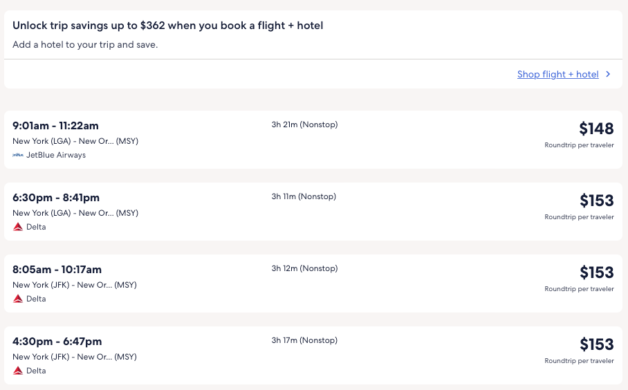 Amazing deal: New York, Boston, Atlanta, Miami, Chicago, Austin Houston, Denver to New Orleans from $137 round-trip.