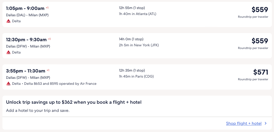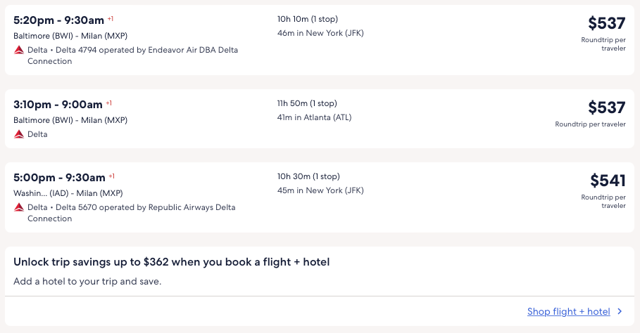 Amazing deal: New York (nonstop); Charlotte, Dallas, Washington DC, Boston, Baltimore, Chicago, San Francisco to Milan, Italy from $540 round-trip.
