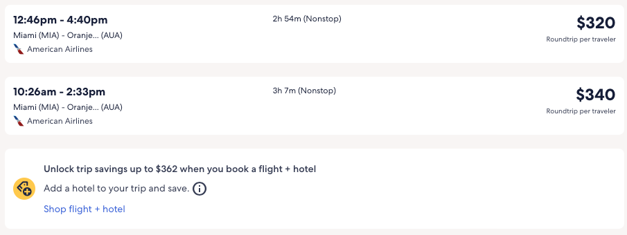 Amazing deal: New York, Washington DC, Philadelphia, Miami to Aruba from $284 round-trip.