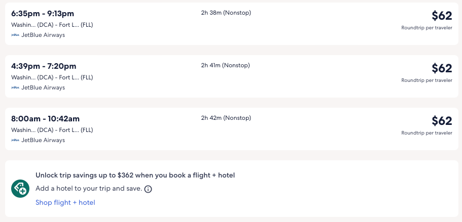 Amazing deal: Washington DC to Fort Lauderdale, FL from $62 round-trip.