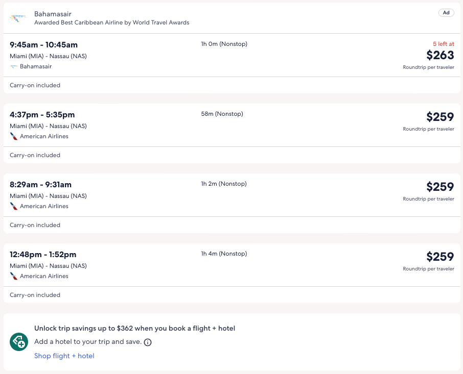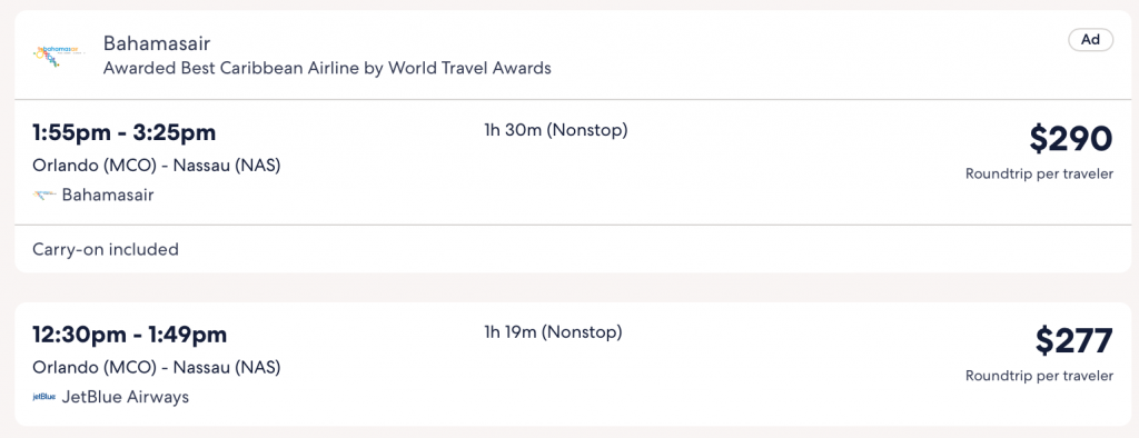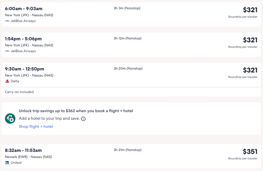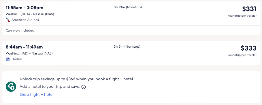 Amazing deal: Atlanta, Orlando, Miami, Washington DC, New York, Newark to Nassau, Bahamas from $187 round-trip.