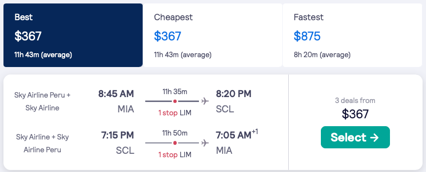 Amazing deal: Miami to Peru or Chile from $267 round-trip.