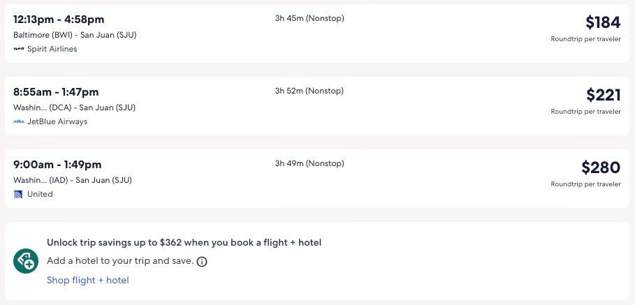 Amazing deal: Baltimore/Washignton DC to Puerto Rico or Cancun, Mexico from $184 round-trip.