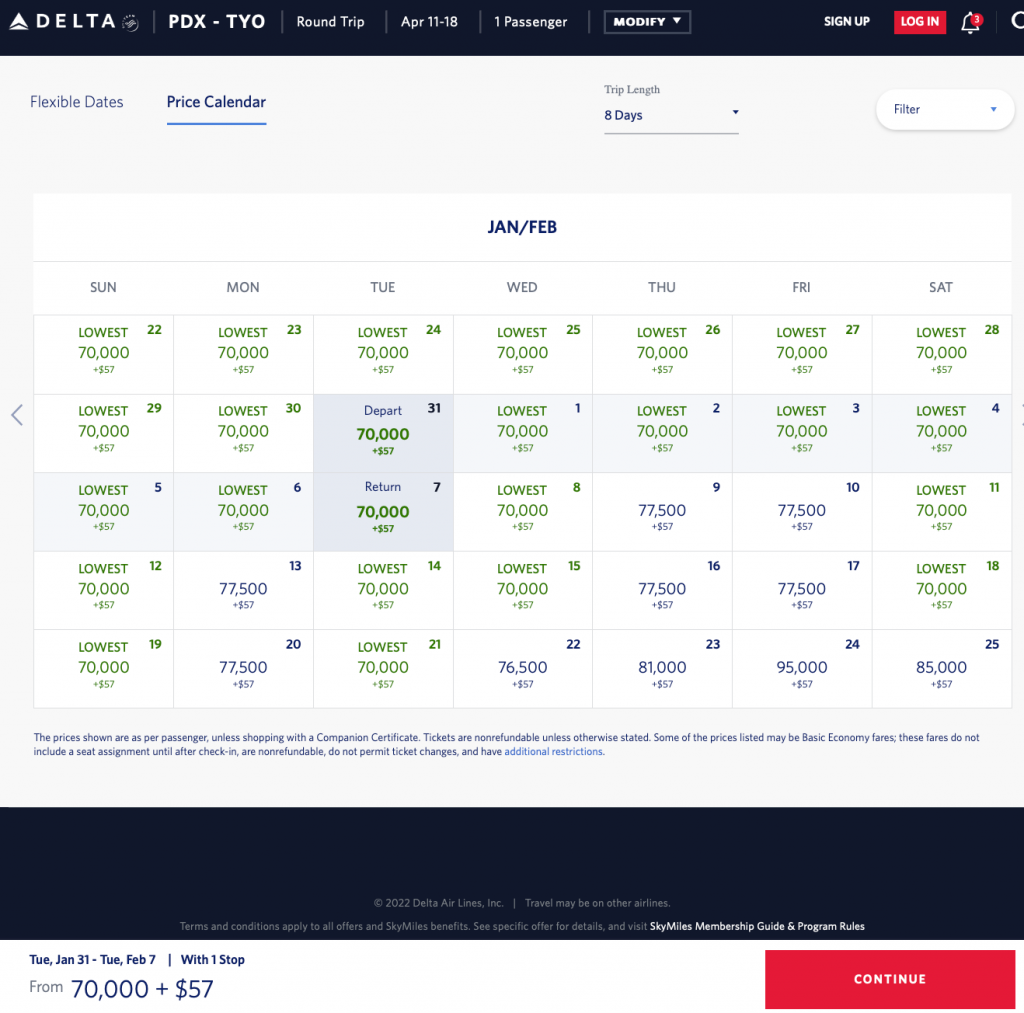 Amazing award travel deals via Delta — flights via Delta from Atlanta, Detroit, Seattle (nonstop); LA, Portland, Minneapolis, San Francisco, New York, Boston to Tokyo, Japan from 58000 miles + taxes and fees.