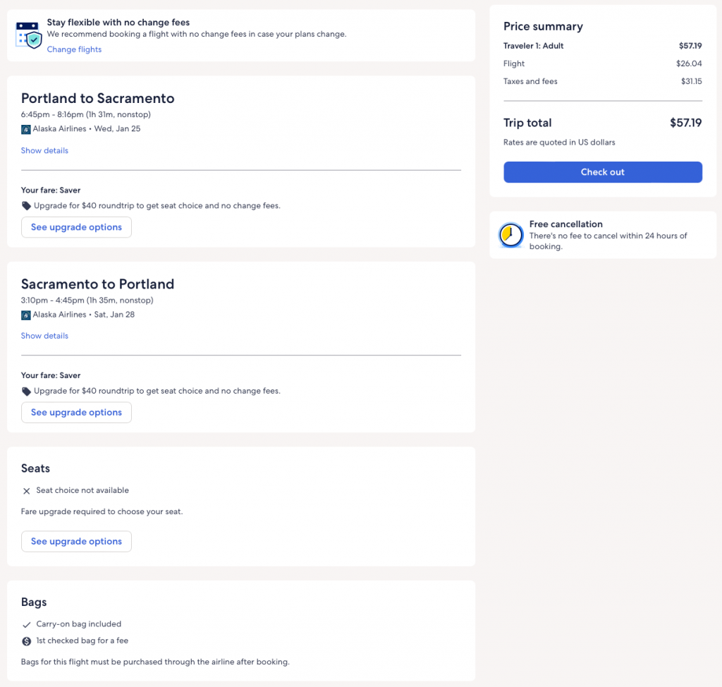 Amazing deal: Portland to Sacramento for $58 round-trip.