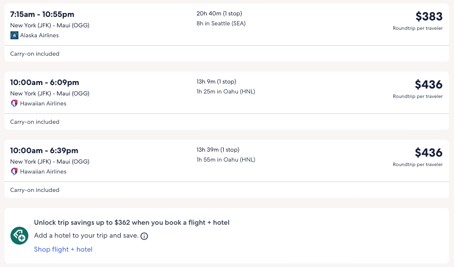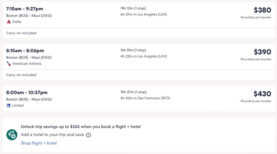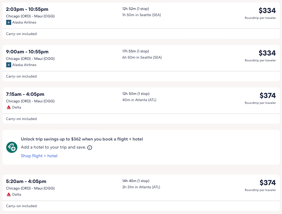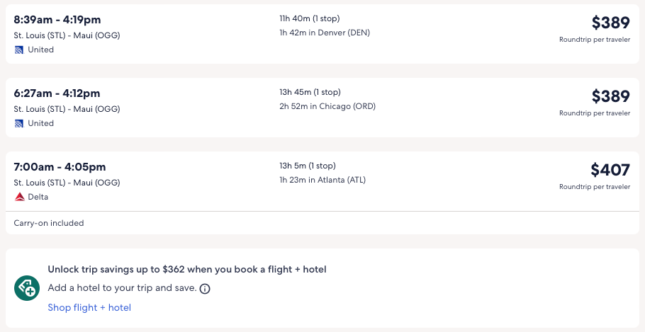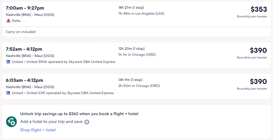 Amazing deal: New York, Miami, Nashville, St. Louis, Boston, Atlanta, Chicago to Maui, Hawaii from $334 round-trip.