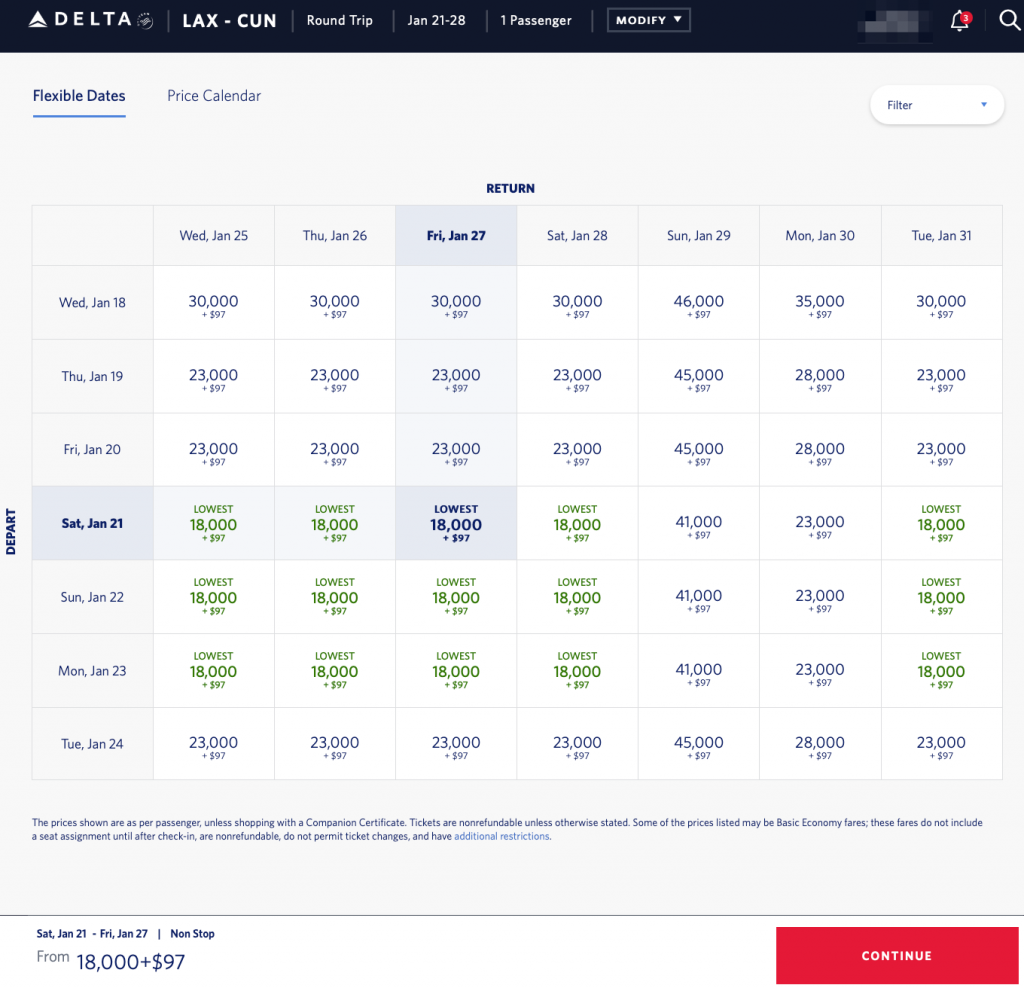 Amazing award travel deals via Delta — round-trip flights via Delta to Cancun, Mexico from 16000 miles + taxes and fees.