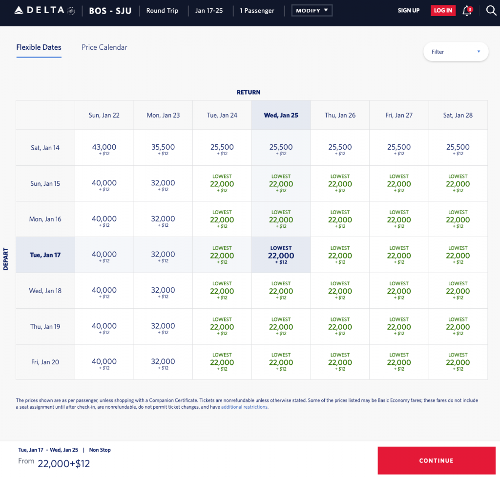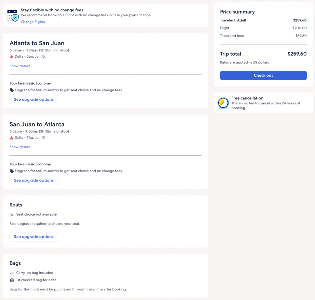 Screenshot made at Delta.com, on 12/14/22