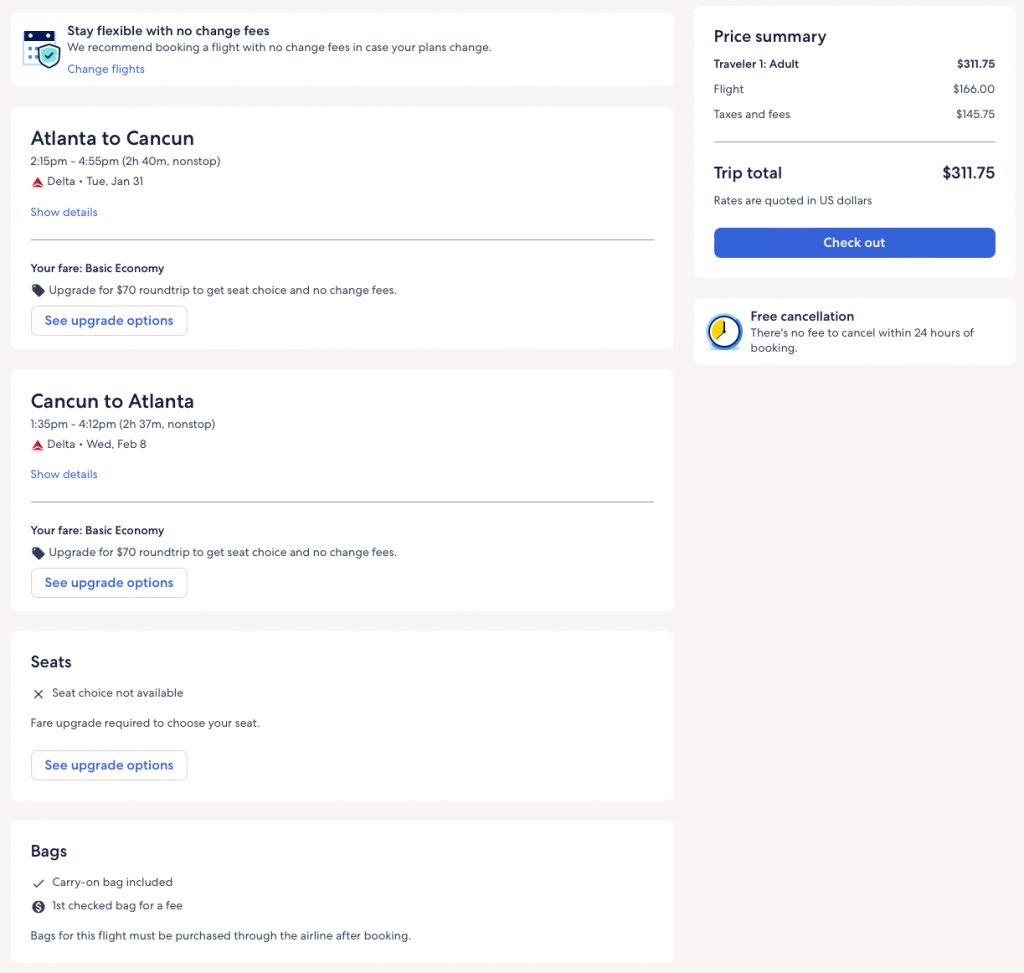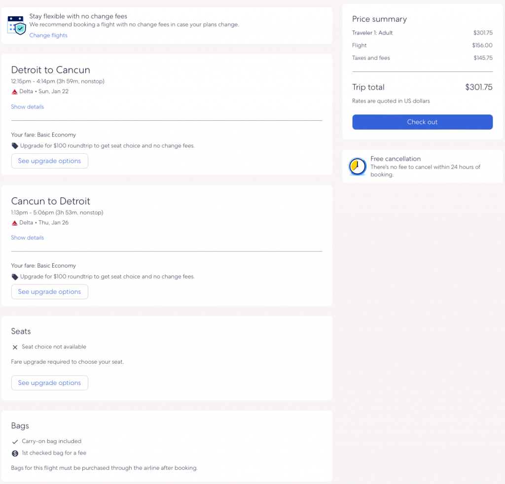 Discounted flights from Atlanta, New York, Detroit, Los Angeles to Cancun, Mexico from $302 round-trip.
