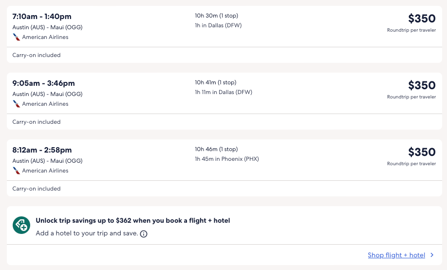 Discounted flights from New York, Newark, Boston, Austin to Hawaii: Maui from $350 round-trip.