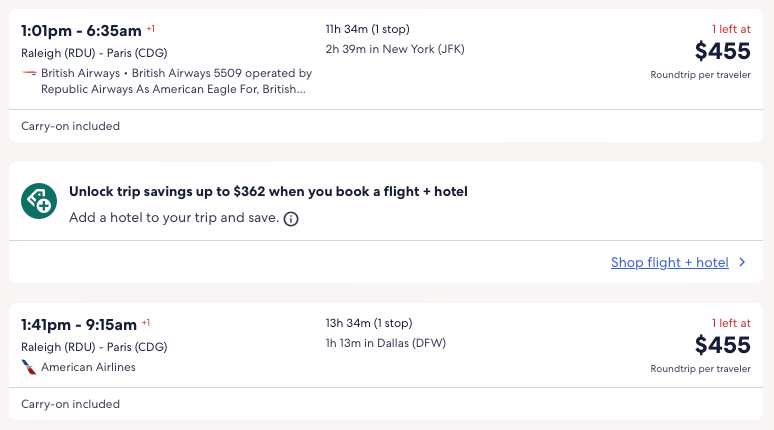 Discounted flights from Atlanta, Detroit, Minneapolis, Houston, Raleigh, Salt Lake City, Seattle to Paris, France from $267 round-trip.