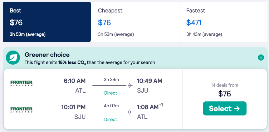 Discounted nonstop flights from Atlanta, Miami, Tampa, Orlando, Philadelphia to Puerto Rico: San Juan from $71 round-trip.