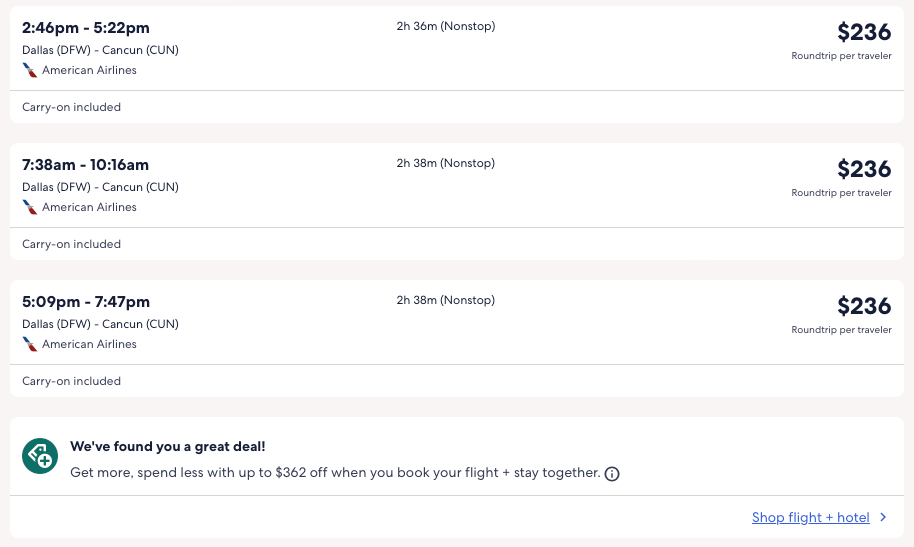 Amazing deal: Dallas to Cancun, Mexico from $236 round-trip.