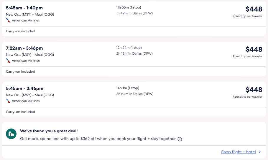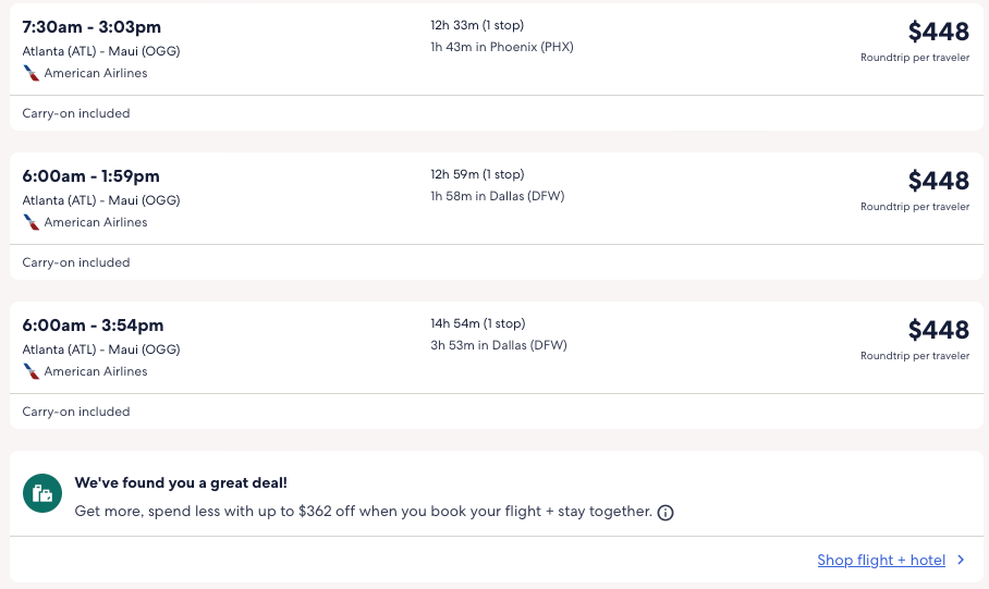AA flights sale to Maui, Hawaii from $388 R/T