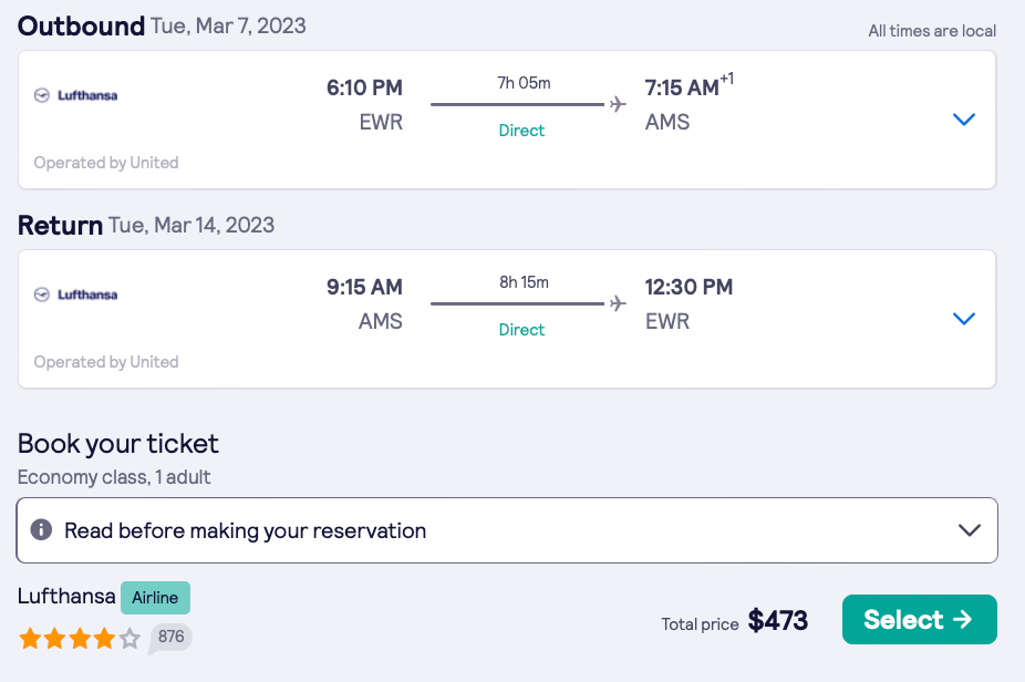 Discounted flights from Newark to Amsterdam, Netherlands from $473 round-trip.