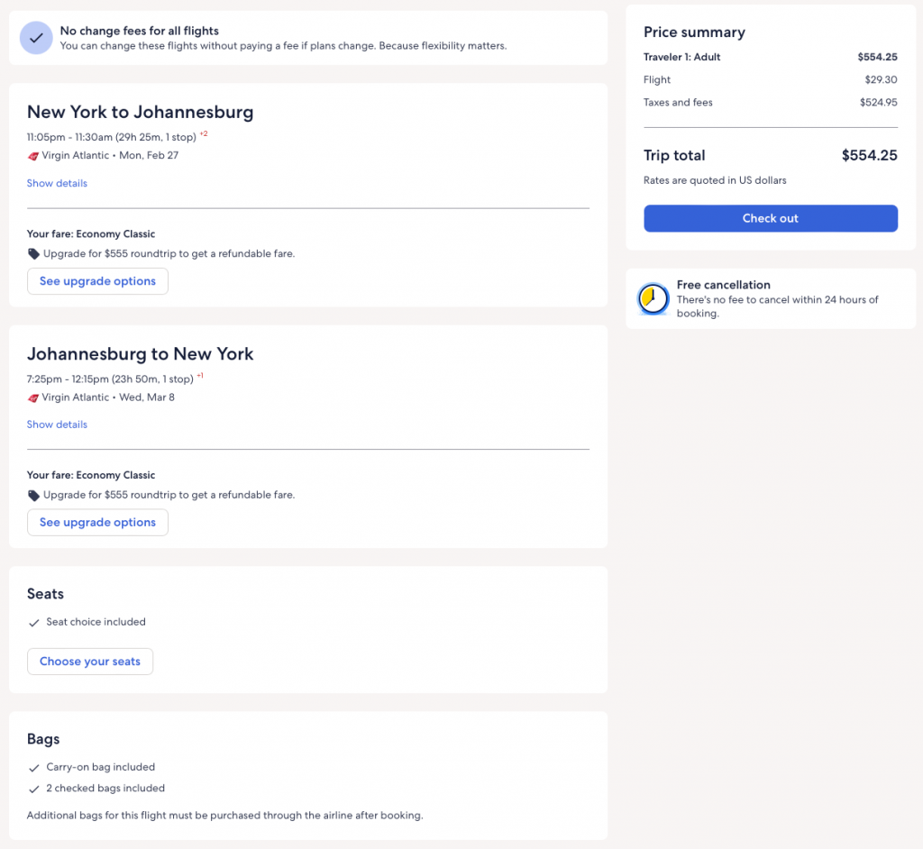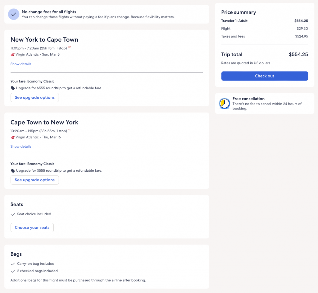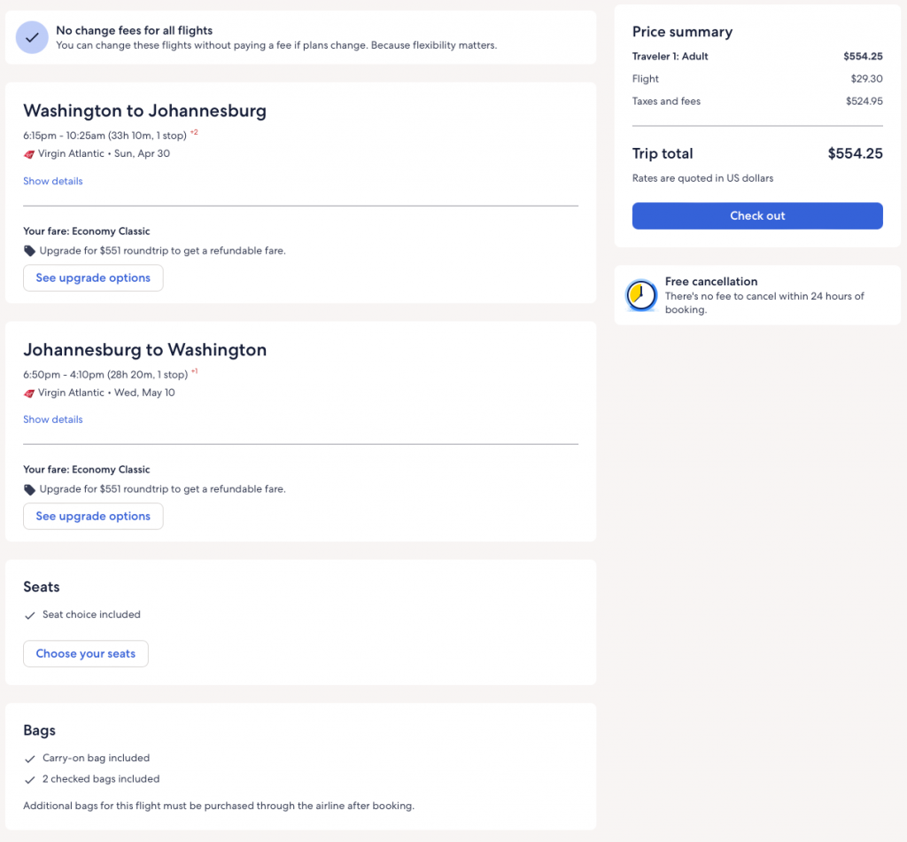 Discounted flights from New York and Washington DC to South Africa: Cape Town or Johannesburg from $555 round-trip.
