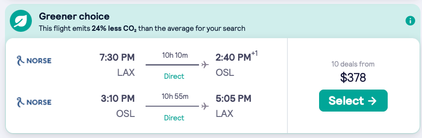 Note, that Norse is a budget carrier with optional service fees: baggage, seat selection etc.