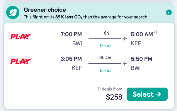 Post contains offers from budget airline: Play, which has optional fees like bags, seat selection etc.