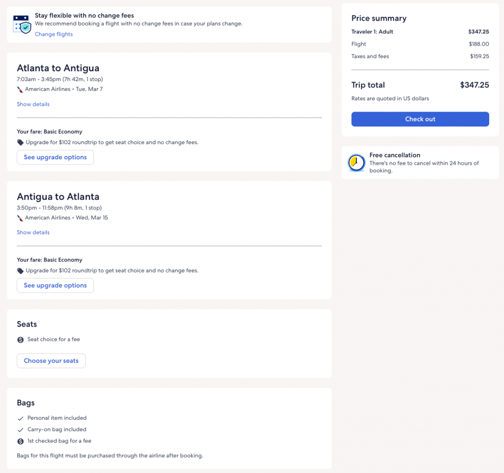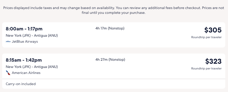 Discounted flights from Atlanta, New York (nonstop), Raleigh, Boston to Antigua from $305 round-trip.
