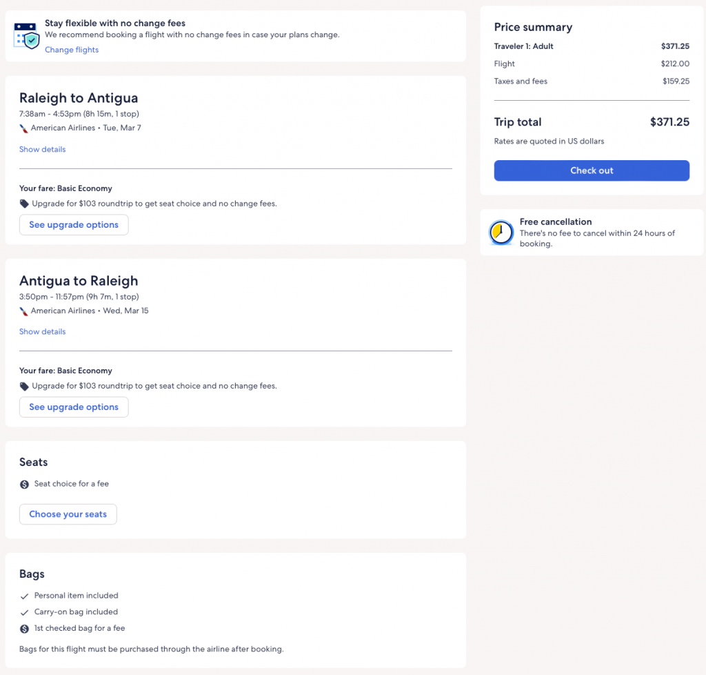 Note, that jetBlue does NOT include carry-on in their basic fares.