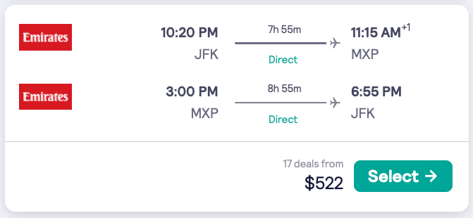 Emirates nonstop! NYC to Milan for $522 R/T and Newark to Athens for $638 R/T