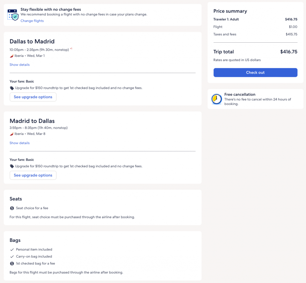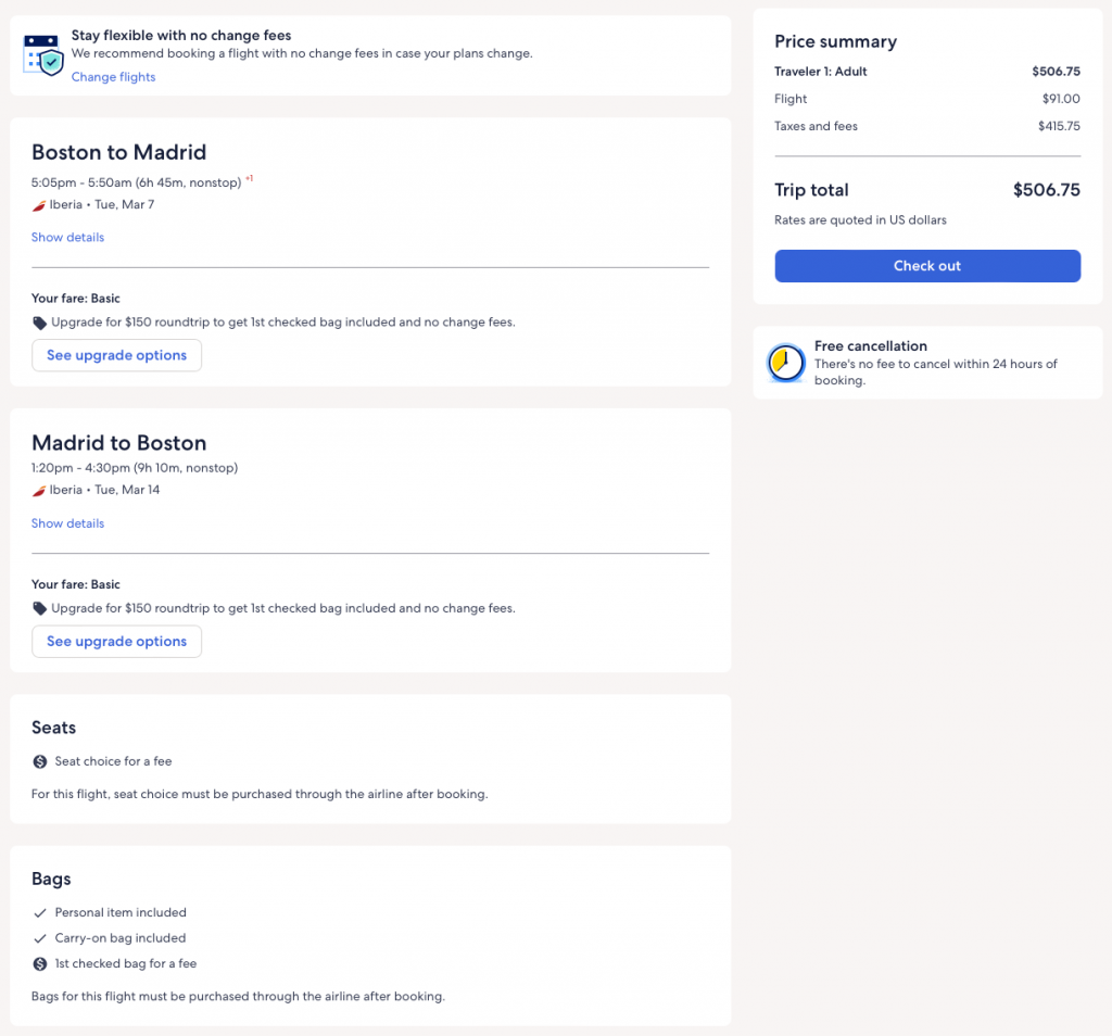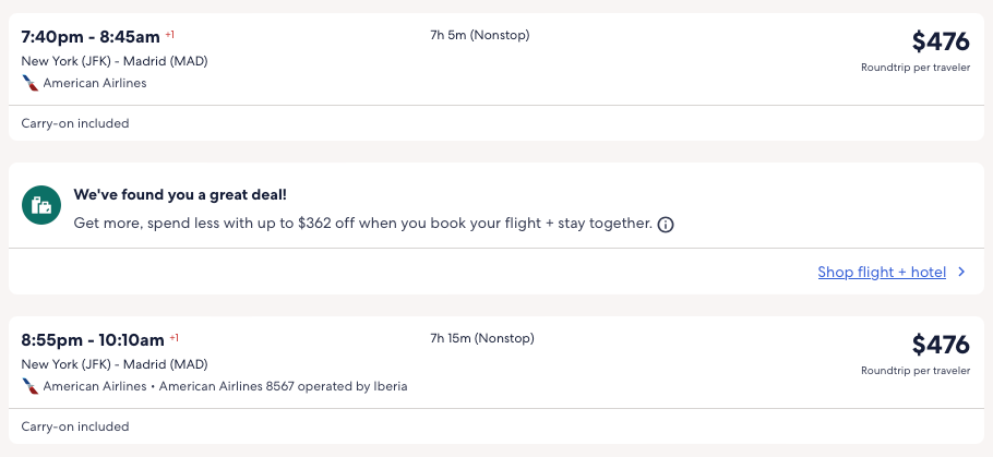 Discounted flights from Boston, New York, Miami, Washington DC, Chicago, Dallas, Los Angeles to Madrid, Spain from $417 round-trip.