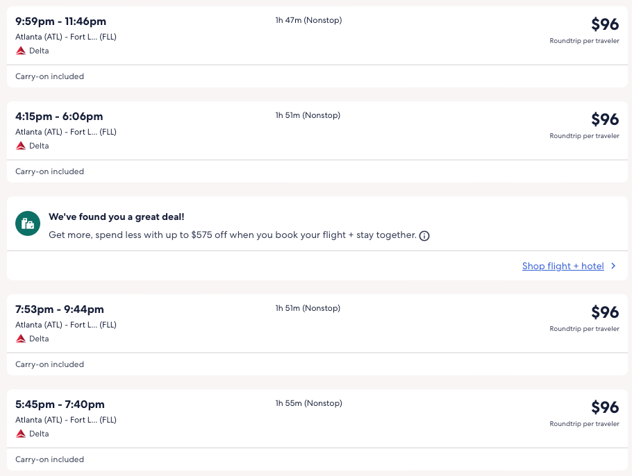 Nonstop flights to Fort Lauderdale, Florida (Miami area) for only $42-$96 R/T