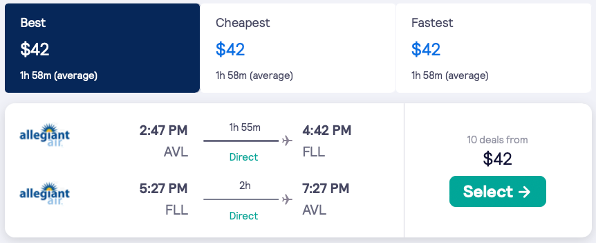Discounted flights from Atlanta, New Orleans, Asheville, Raleigh, Memphis to Fort Lauderdale, Florida from $42 round-trip.