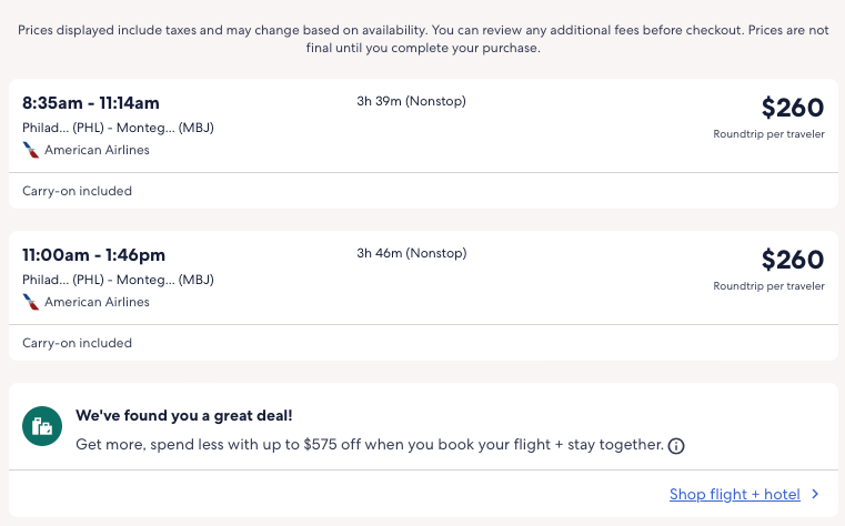 Discounted flights from Philadelphia to Montego Bay, Jamaica from $260 round-trip.