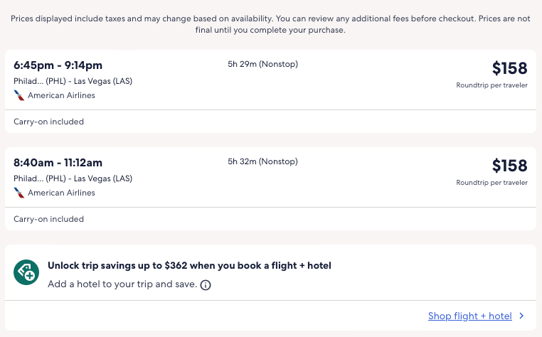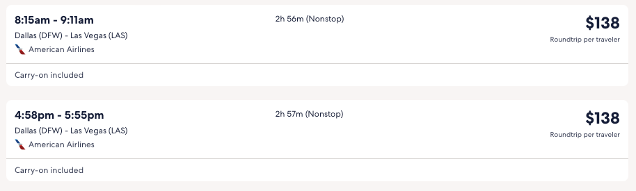Discounted flights from Austin, Charlotte, Philadelphia, Dallas to Las Vegas from $90 round-trip.