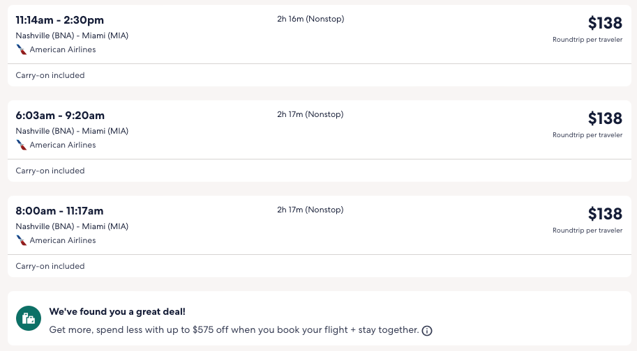 Discounted flights from Atlanta, New York, Denver, Austin, Nashville, New Orleans to Miami from $98 round-trip.