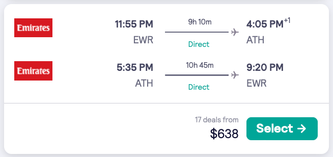 Discounted flights from Newark to Athens, Greece from $638 round-trip.