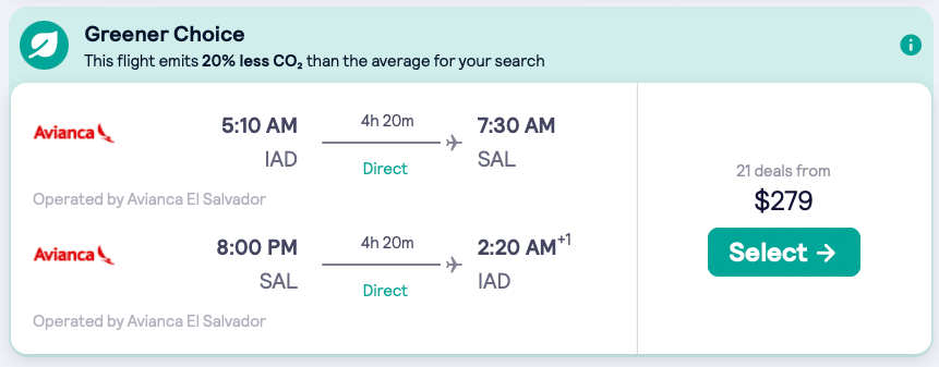 Discounted flights from Miami, New York, Washington DC, Houston, Los Angeles to El Salvador from $211 round-trip.