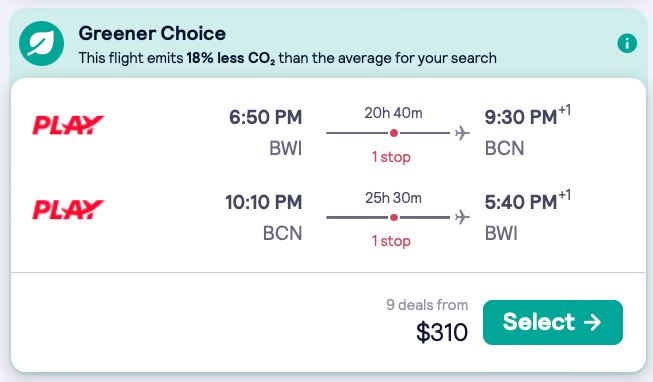 Discounted flights from Baltimore to Barcelona, Spain from $310 round-trip.