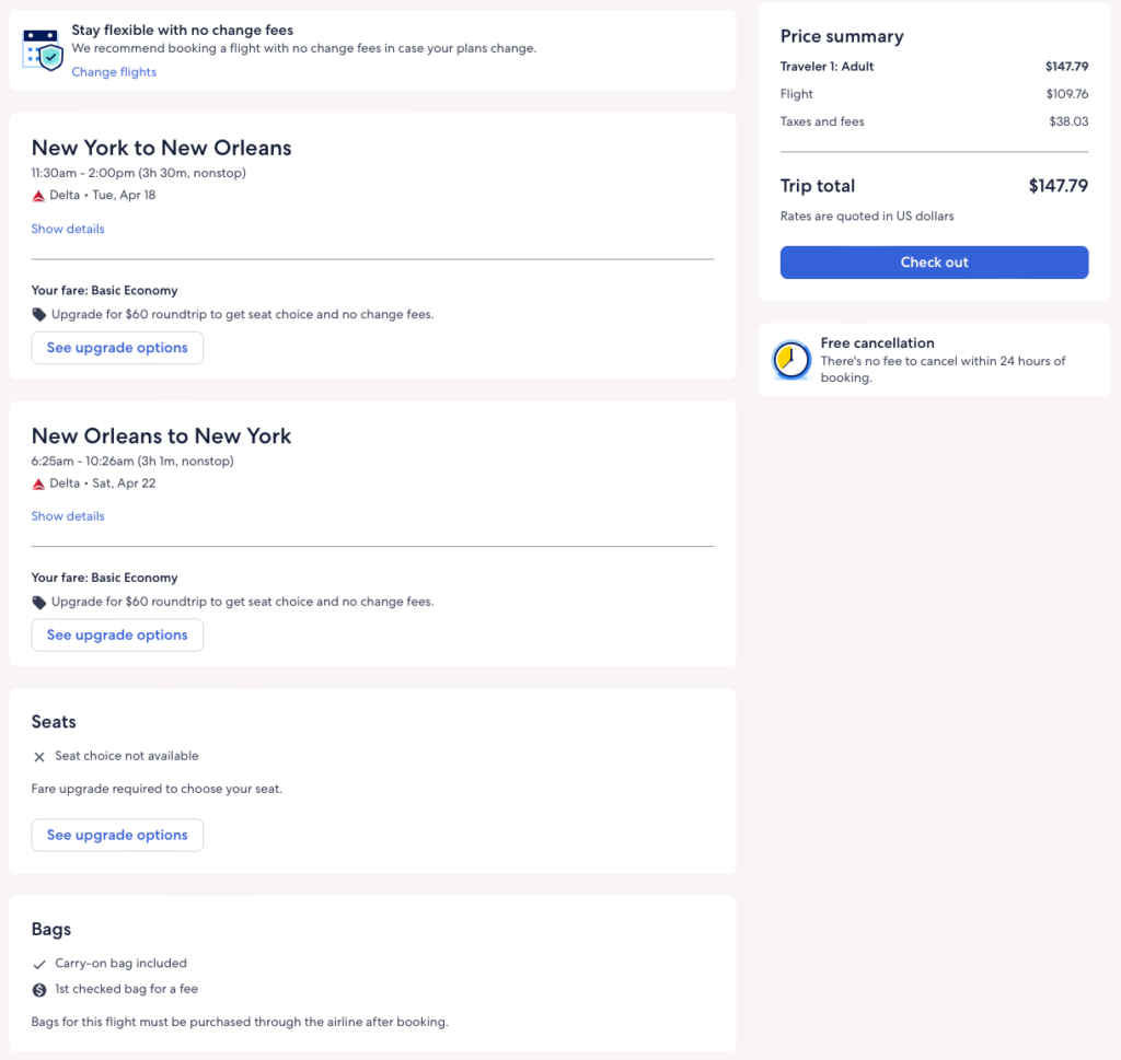 Discounted flights from Atlanta and New York to New Orleans from $148 round-trip.