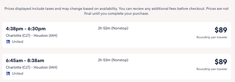 Discounted flights from Charlotte to Houston from $89 round-trip.