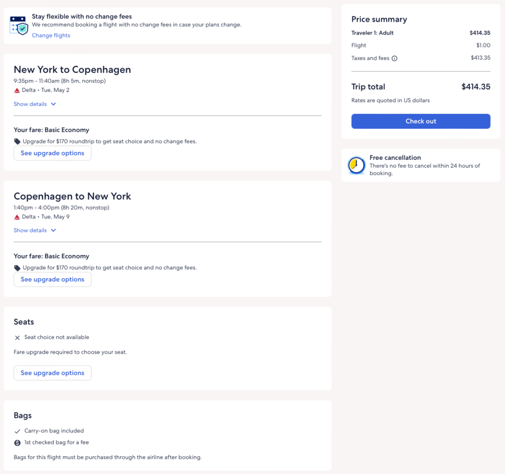 Discounted flights from New York to Copenhagen or Stockholm from $415 round-trip.