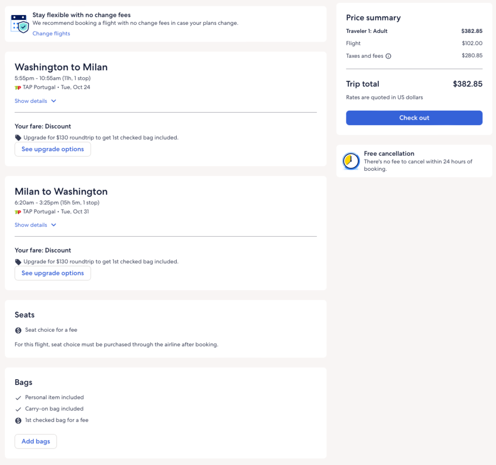 Discounted flights from Washington DC to Milan, Italy from $383 round-trip.