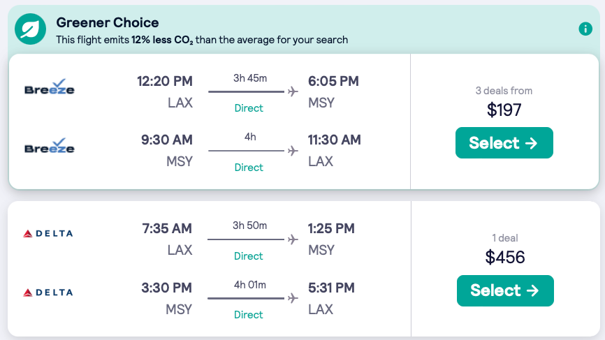 Discounted flights from Los Angeles to New Orleans from $197 round-trip.
