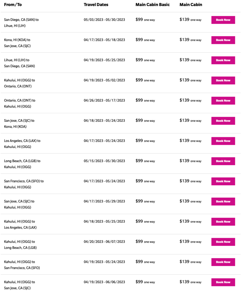 Screenshot from hawaiianairlines.com made on Feb 28, 2023.