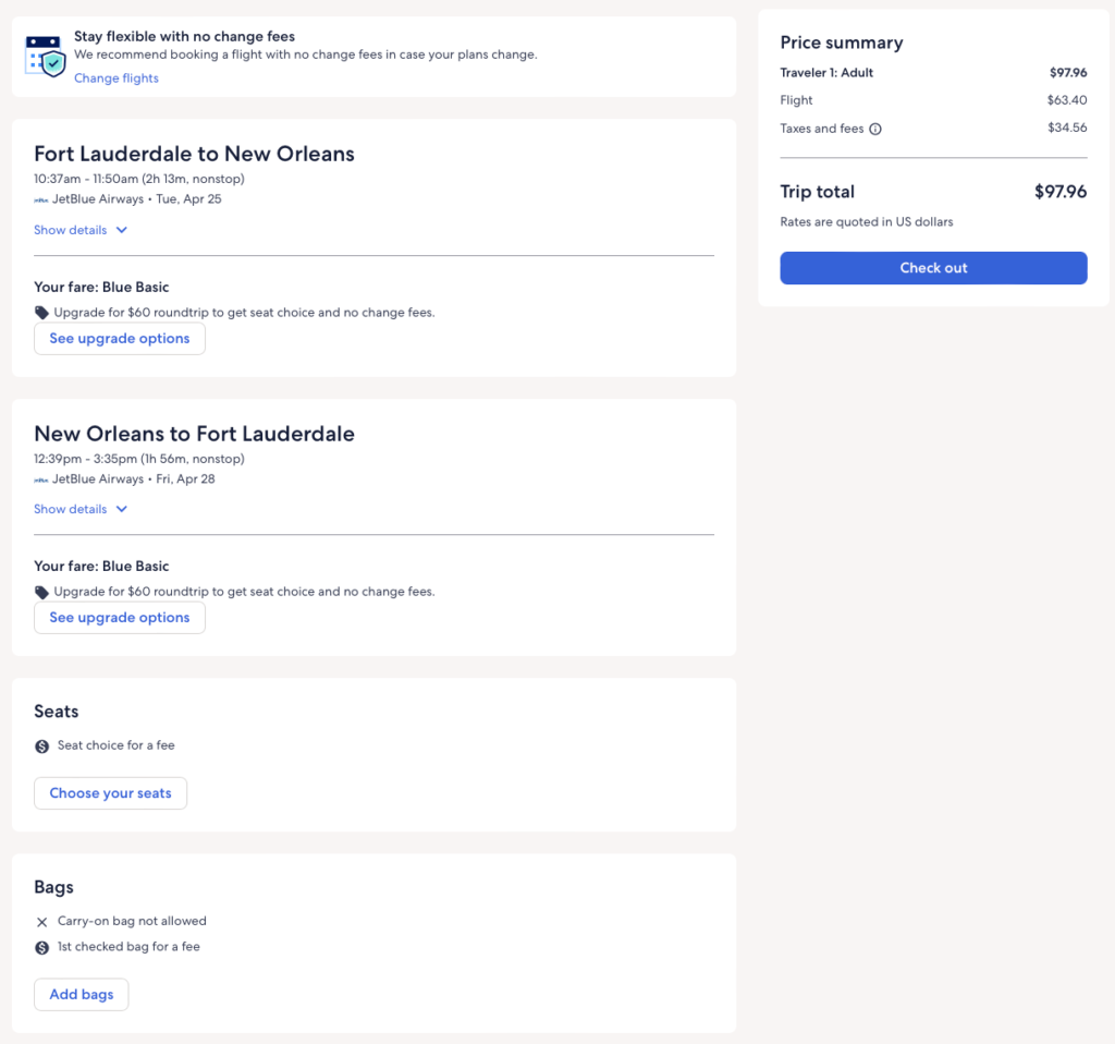 Nonstop flights between New Orleans and Fort Lauderdale for $49 each way