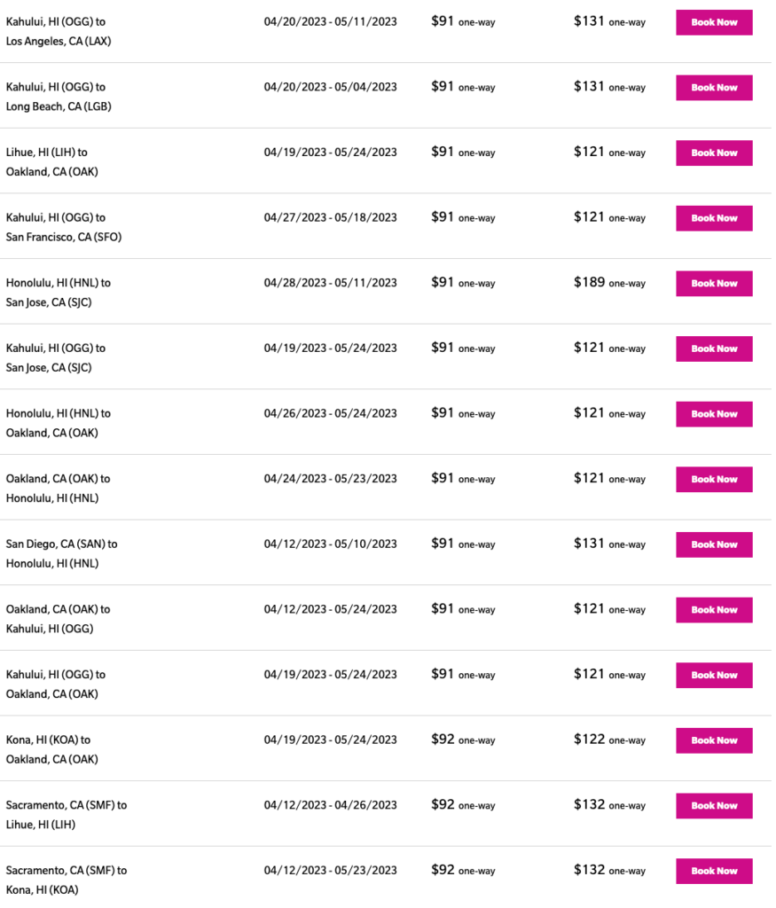 Screenshot from hawaiianairlines.com made on Feb 28, 2023.