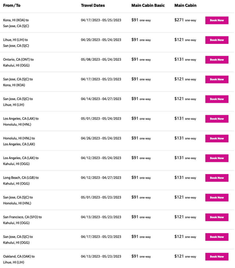 Screenshot from hawaiianairlines.com made on Feb 28, 2023.